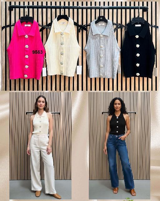BLUSA GRIS ACANALADA BOTONES DE FLOR S/