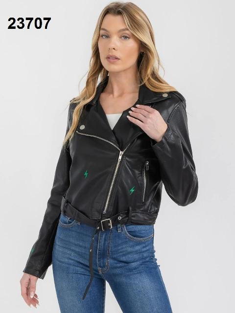 CHAMARRA NEGRA VINIL ESTAMPADO