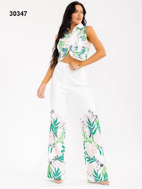 CONJUNTO BLANCO FLORAL CHALECO BOTONES M