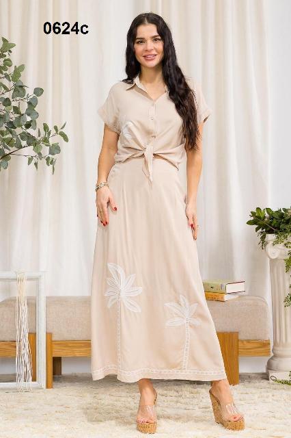 CONJUNTO FALDA CAFE BORDADO M