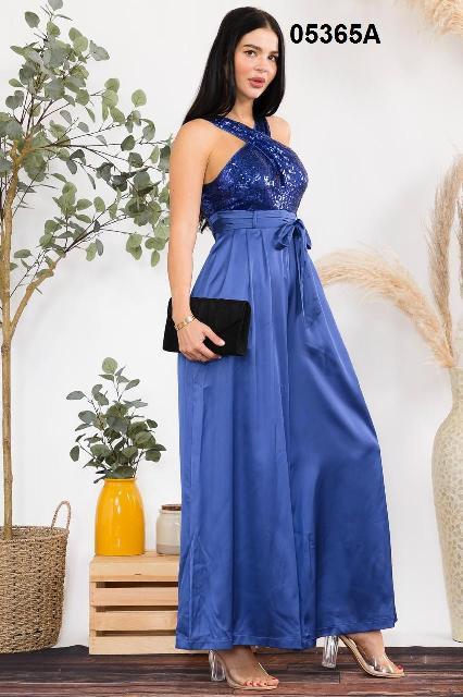 PALAZZO AZUL PECHO CRUZADO CON LENTEJUELAS M