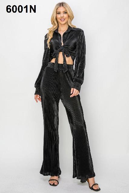SET NEGRO ACANALADO BLUSA AJUSTABLE ´VOGUE VIBES´ L