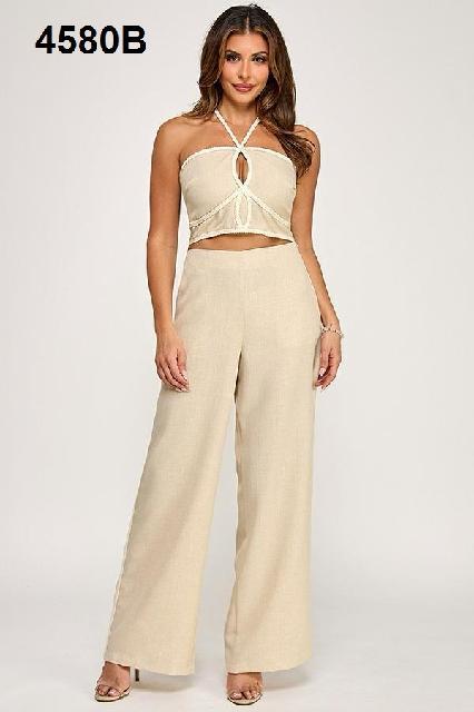 SET BEIGE BLUSA HALTER, CONTORNO TRENZADO L