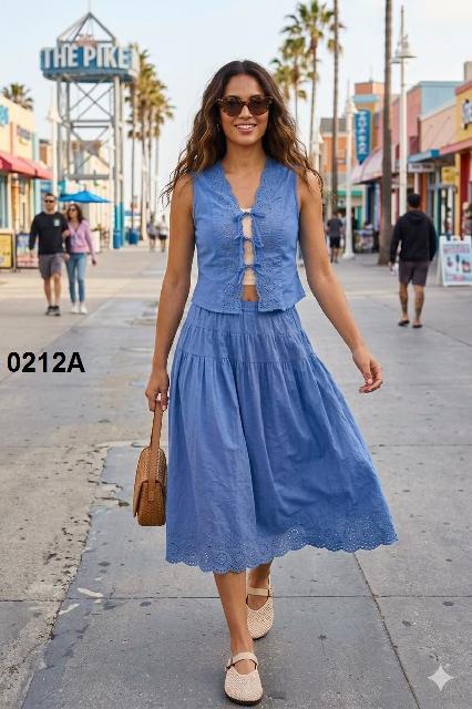 SET AZUL CON BORDADO, MOÑOS EN BLUSA L