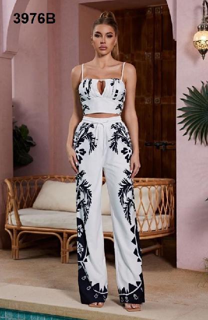 SET BLANCO FLORAL NEGRO TOP TABLEADO M