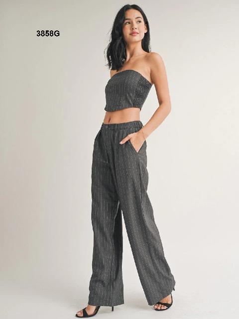 SET GRIS DE VESTIR, RAYAS BLANCAS
