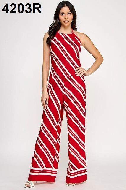 SET ROJO RAYADO BLUSA HALTER EN PICO L