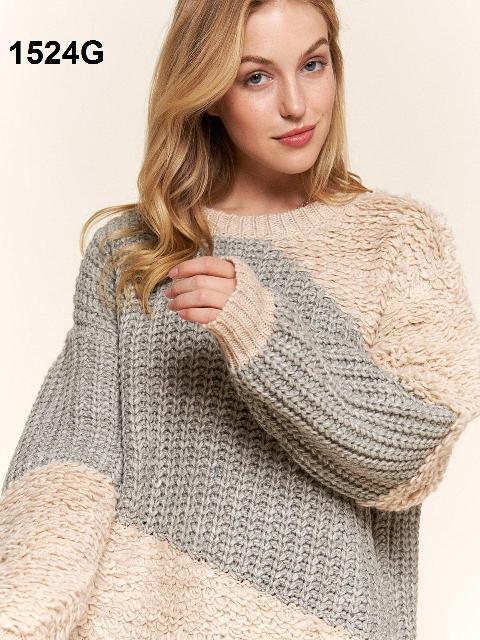 SUETER GRIS CON BEIGE, TEJIDO M/L