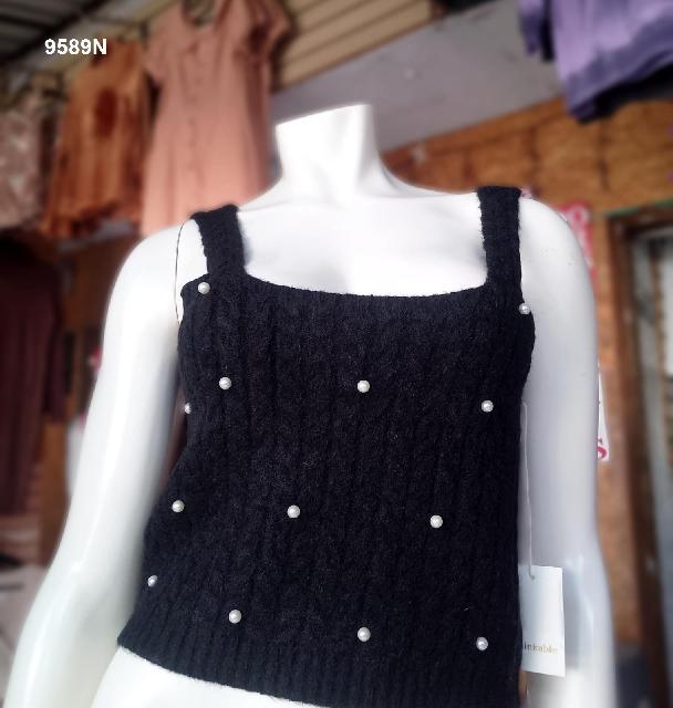 TOP NEGRO CON PERLAS,TIRANTE GRUESO S/
