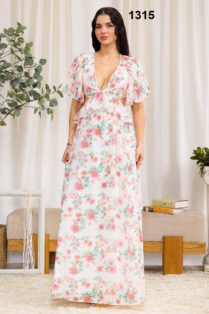 VESTIDO BLANCO FLORES CORTES CINTURA