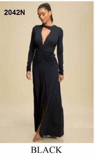 VESTIDO NEGRO CINTURA PLIZADA, ESCOTE EN PECHO L