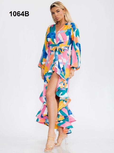 VESTIDO BLANCO COLORIDO FALDA MULTIOLANES L