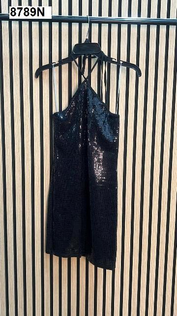 VESTIDO NEGRO DE LENTEJUELAS CUADRADAS, HALTER L