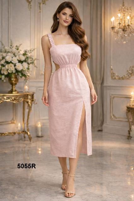 VESTIDO ROSA ESPALDA DESCUBIERTA, TIRANTES GRUESOS L
