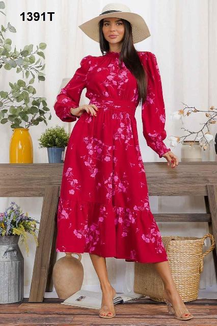 VESTIDO FLORAL ROSA, CINTURA PLIZADA