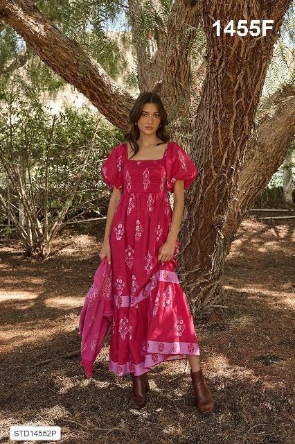 VESTIDO FUCHSIA MANDALAS LILA, RESORTE EN PECHO S