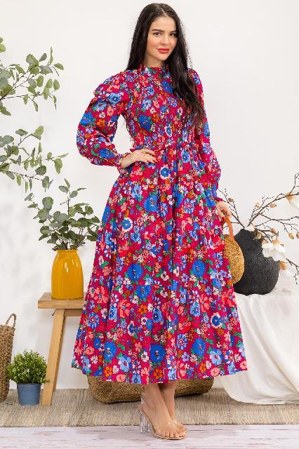 VESTIDO MAGENTA FLORES MULTICOLOR, LARGO L