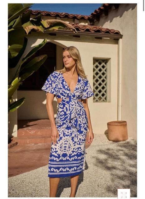 VESTIDO AZUL MANDALAS BLANCAS CINTURA DESCUBIERTA M