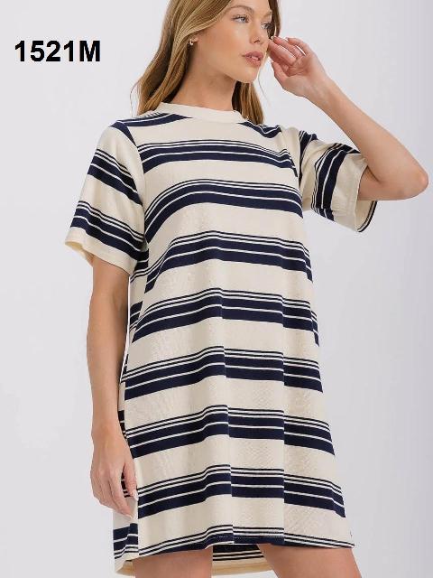 VESTIDO MARFIL RAYAS NEGRAS, HOLGADO M