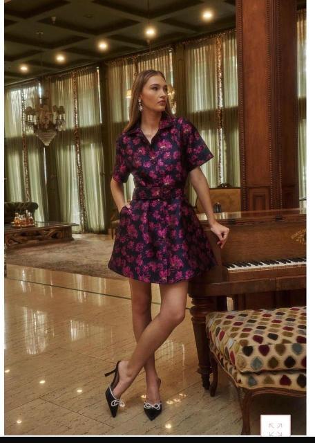 VESTIDO MARINO FLORES MORADAS, ABOTONADO M