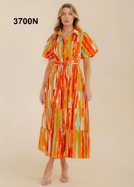 VESTIDO NARANJA MULTI COLOR, ABOTONADO L