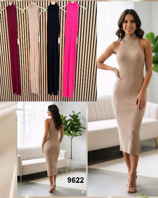 VESTIDO NEGRO ACANALADO CUELLO TORTUGA, SIN MNG M/L