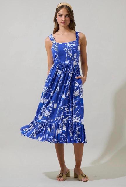 VESTIDO AZUL PAISAJE BLANCO, TIRANTES XS