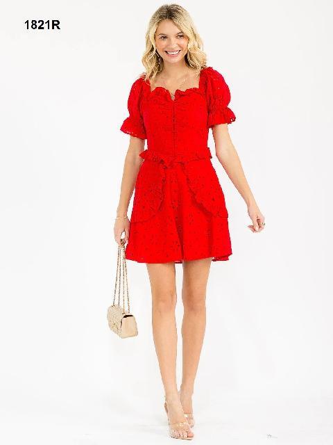 VESTIDO ROJO BORDADO MNG GLOBO, OLAN EN FALDA M